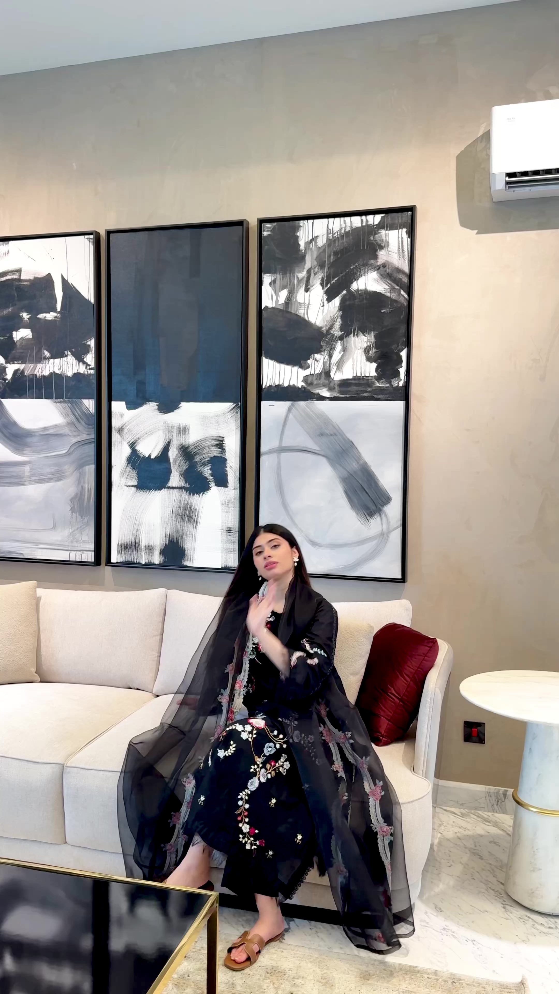 Elevate your wardrobe with Noir, a classic 3-piece black ensemble that speaks sophistication and grace. Designed to never go out of style.  This 3-piece dress includes a sleek long shirt, Organza scalloped dupatta, and easy fit pants.